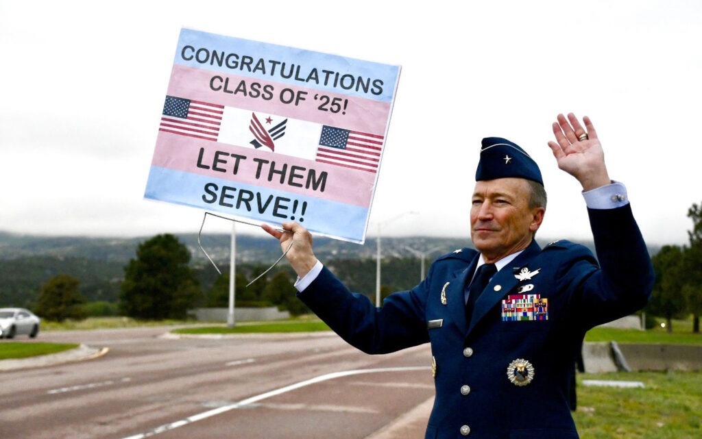 Retired Brig. Gen. Marty France stood in his dress uniform outside the southern entrance to the U.S. Air Force Academy on May 28, holding a sign calling for transgender cadets to be allowed to serve as a steady stream of cars drove onto base for graduation. Three transgender cadets “walked” at this year’s graduation ceremony, […]
