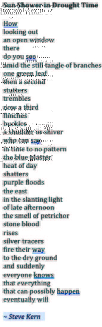 Retired teacher Steve Kern, who is married to District 5 Councilor Nancy Henjum, penned a poem about 719 with a very appropriate name for the water-strapped region.