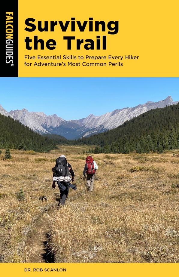 “Surviving the Trail” by Dr. Rob Scanlon teaches “Five essential skills to prepare every hiker for adventure’s most common perils.” The five “skills” in the book cover hydration, weather and managing body temperature, crossing waterways, awareness of heights and risks of falling, and land navigation.