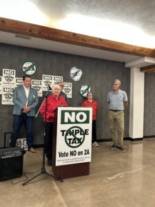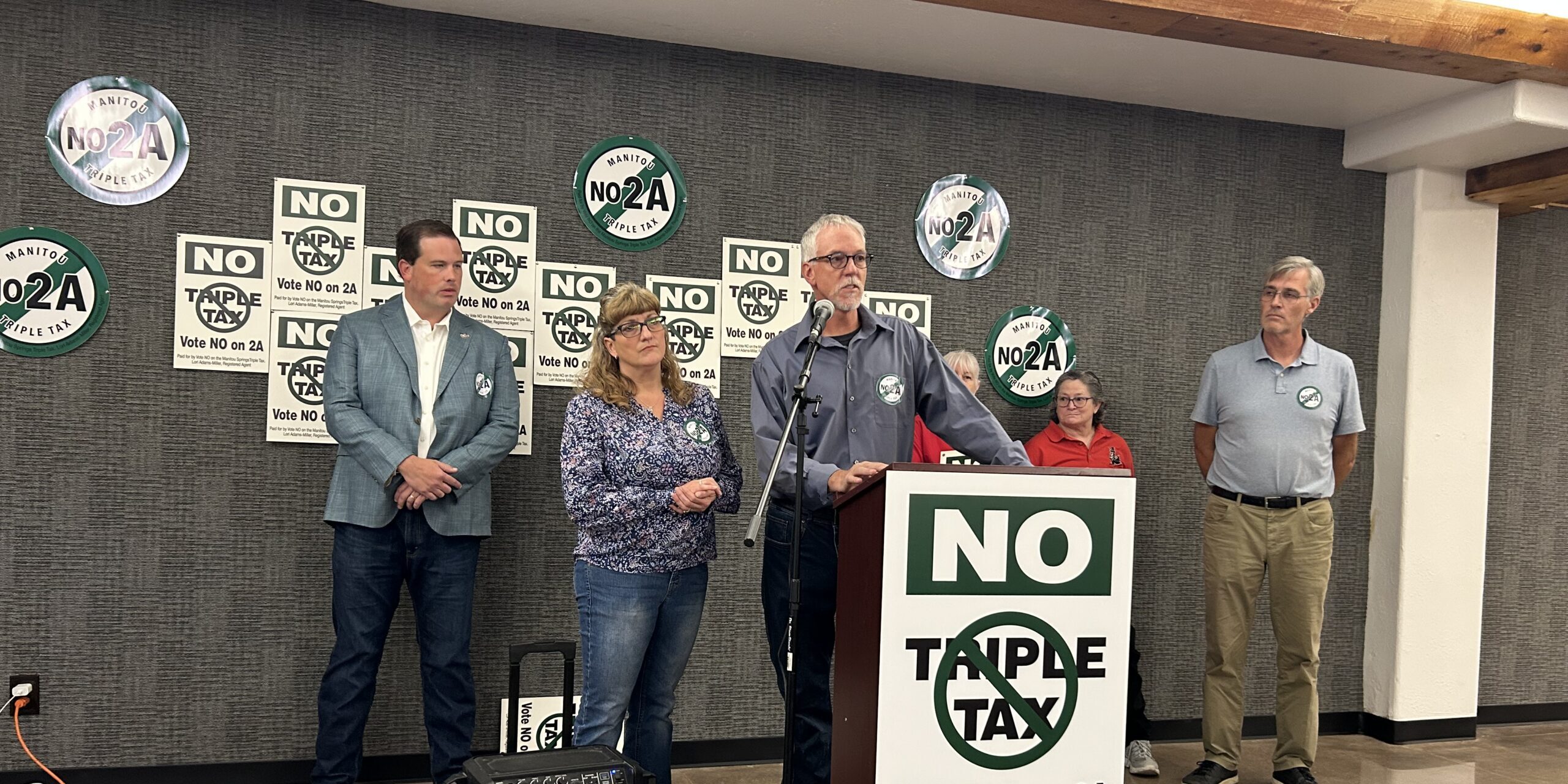 Manitou Springs residents and business owners gathered at the Garden of the Gods Trading Post Thursday night to discuss their opposition to Manitou Springs ballot initiative 2A, which would increase the City’s excise tax on ticket sales and admission fees from 5% to up to 14%. The proposed tax increase would impact just a handful of local businesses – the Iron Springs Chateau, the Pikes Peak Cog Railway, Adventures Out West Ziplines, Manitou E-Bike Company, and the Cliff Dwellings Museum.