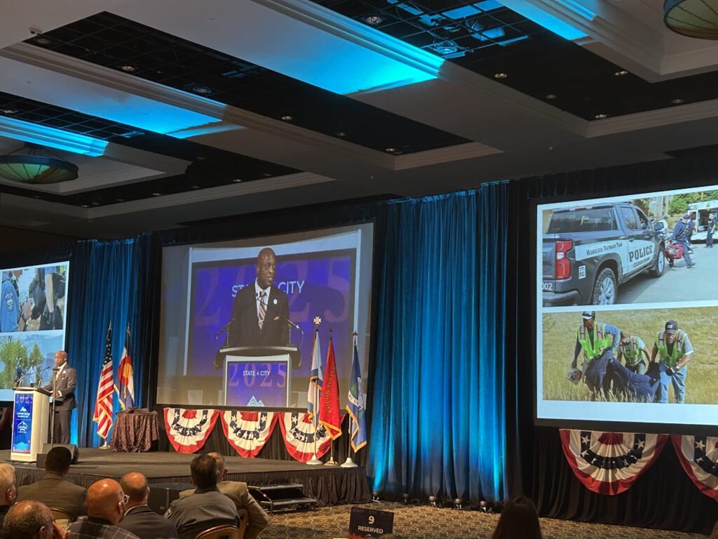 Mobolade focused on the impact increasing the size of the Colorado Springs Police Department has had on public safety. “Since I took office in June 2023, we have hired more than 250 police officers — a historic milestone,” he said. “For the first time in our city’s history, the police department crossed more than 800 officers in the force. We are continually moving forward to our full strength of 839 officers, but why does that matter? Because more officers mean faster response time, safer streets, safer neighborhoods. For the first time since 2019, we are on track to nearing full staffing before the end of my first term, and let me be clear, even at 839 officers, we’re still operating lean compared to most states.”