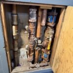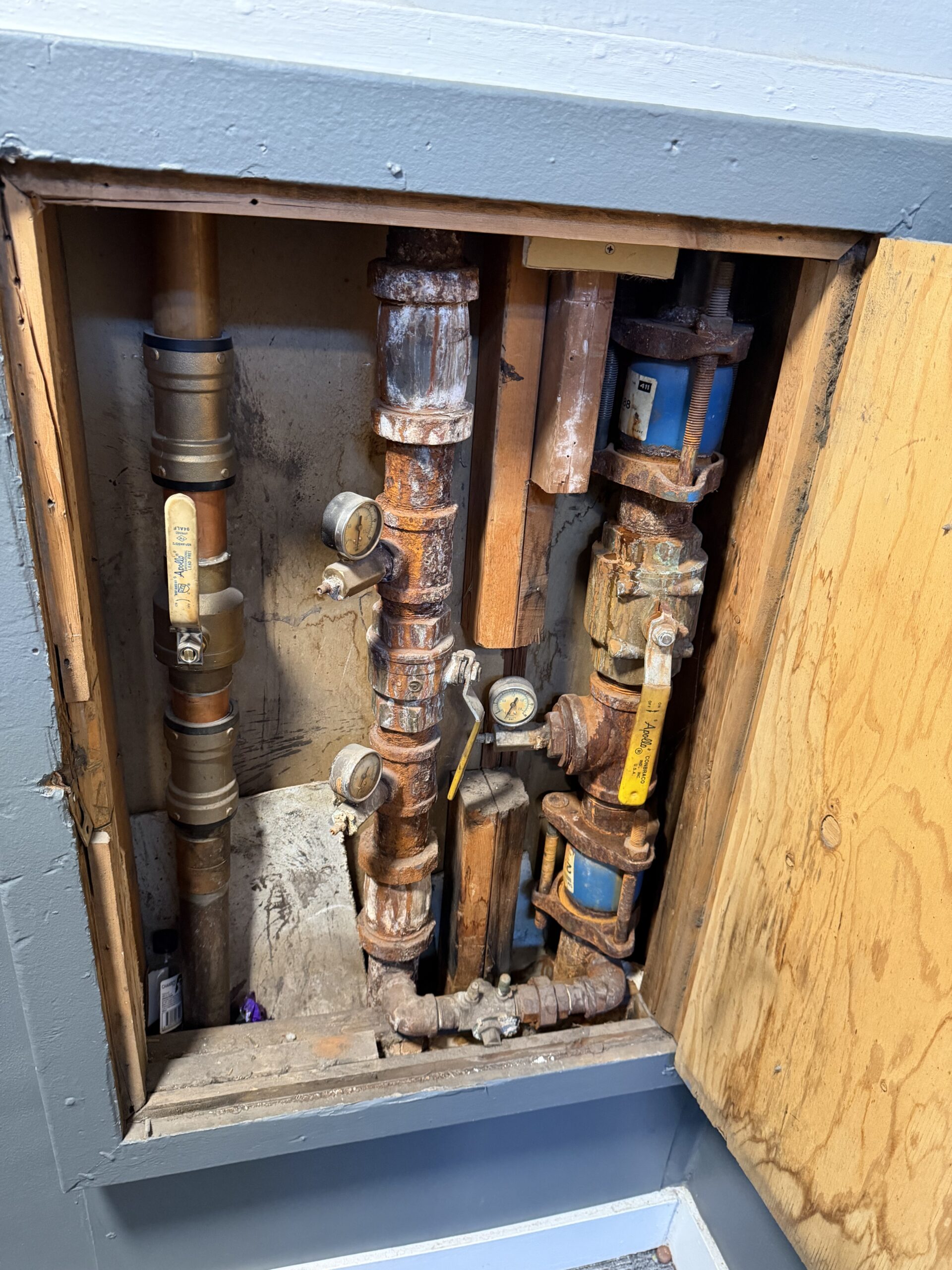 During a walkthrough of the common areas at Aviator Apartments, built in 1971, the Pikes Peak Bulletin photographed rusted water infrastructure, water damage, human waste, and mold. Resident Katherine Murphy stated her apartment was “covered in dried boogers when I moved in” and she recently found someone sleeping in the stairwell of her building, noting that none of the exterior locks in the complex are functional. Life Bridge Capital owns four other complexes in Colorado Springs, and Google reviews show similar concerns.